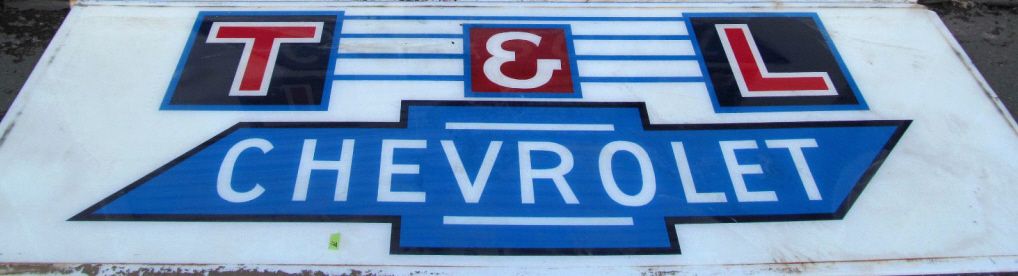 The lot features an original Vintage Chevrolet Dealership sign from Big Timber, Montana. The sign shows a large Chevy Bow Tie log with stunning color and condition. This has an early Vintage age and is a rare one of a kind sign. This is the matching opposite side of the rare sign and matches perfectly. The sign measures 3ftx8ft.