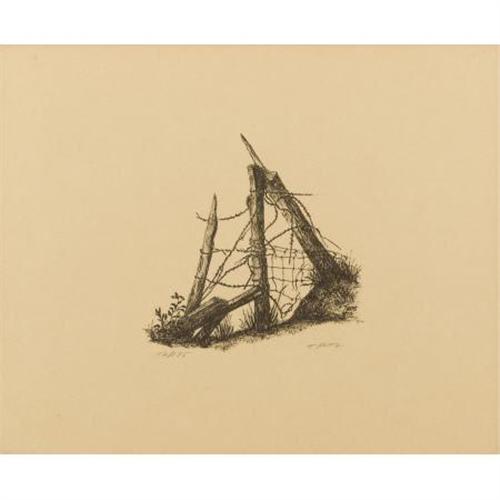 <B>T. Pitts</B></I><BR><I>A Ruined Barb-Wire Fence</B></I><BR>Lithograph, ed. 12/175<BR>11 x 13-1/2 inches (27.9 x 34.3 cm)<BR>Signed and dated lower right<BR> <BR><BR><b>Shipping:</b> Requires 3rd Party Shipping (<a target="_blank" href="http://www.heritageauctions.com/common/shipping.php">view shipping information</a>)