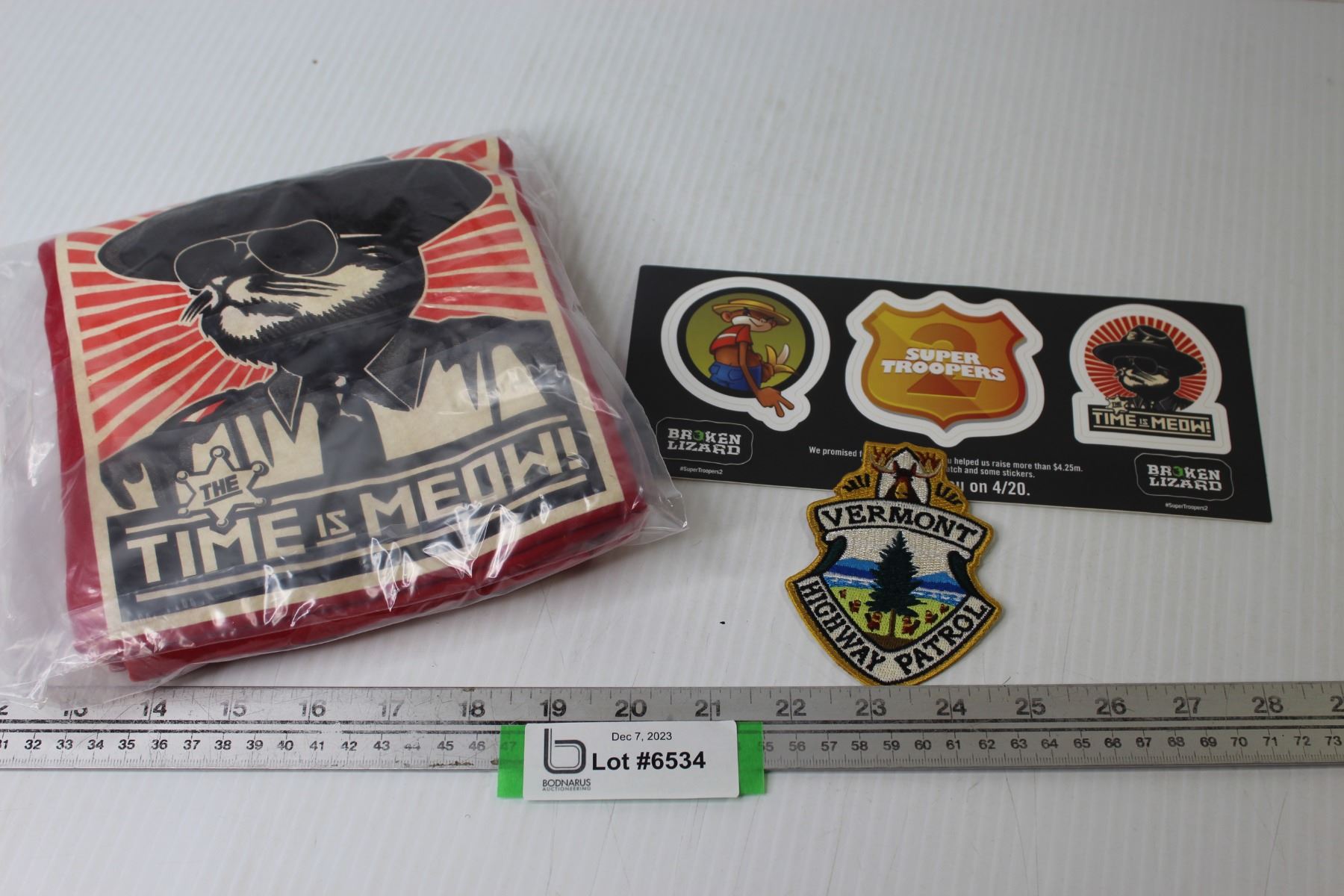 T-Shirt - Time is Meow (Size Lg) - Highway Patrol Sew on Patch & Stickers