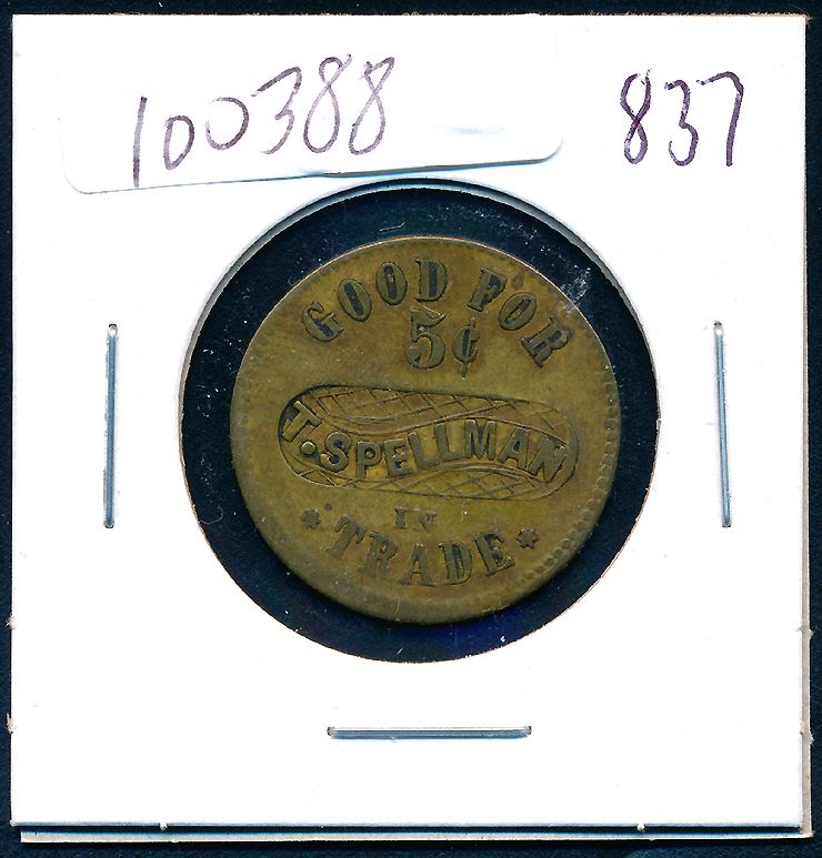 T. Spellman, Fenelon Falls, Brunswick Balke rev., Br.837, Brass, ??, VF. Scarce.