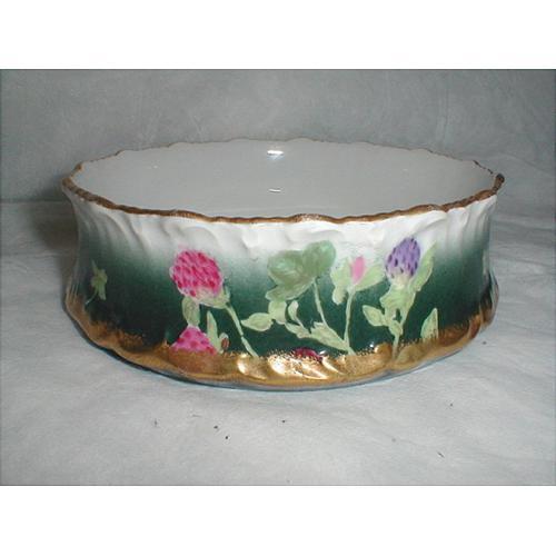 THIS SALE IS FOR A BEAUTIFUL PUDDING BOWL THAT IS MARKED T & V LIMOGES AND DATED 1896. THIS BOWL MEASURES 2 1/4 IN. TALL AND 6 1/4 IN. IN DIAMETER AND IS IN VERY GOOD CONDITION WITH NO CHIPS, CRACKS, OR REPAIRS AS WELL AS THE HAND PAINTED DESIGN AND GOLD TRIM.
