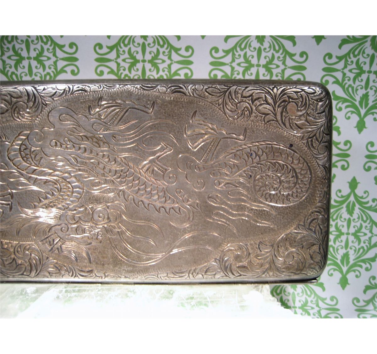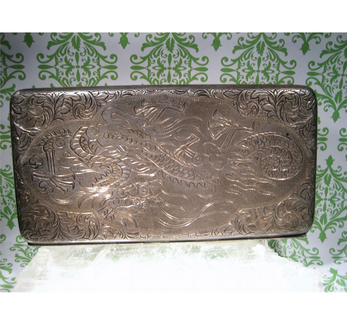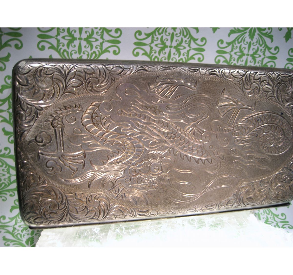 (1) T.W. 198.5 GRAMS ANTIQUE CHINESE EXPORT STERLING SILVER CIGARETTE CASE BOX DRAGON XFR TESTED REPORT FOR 92.61 % SILVER
