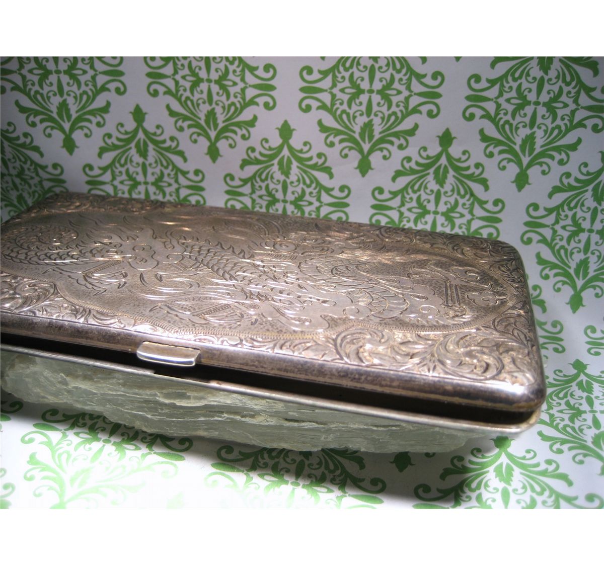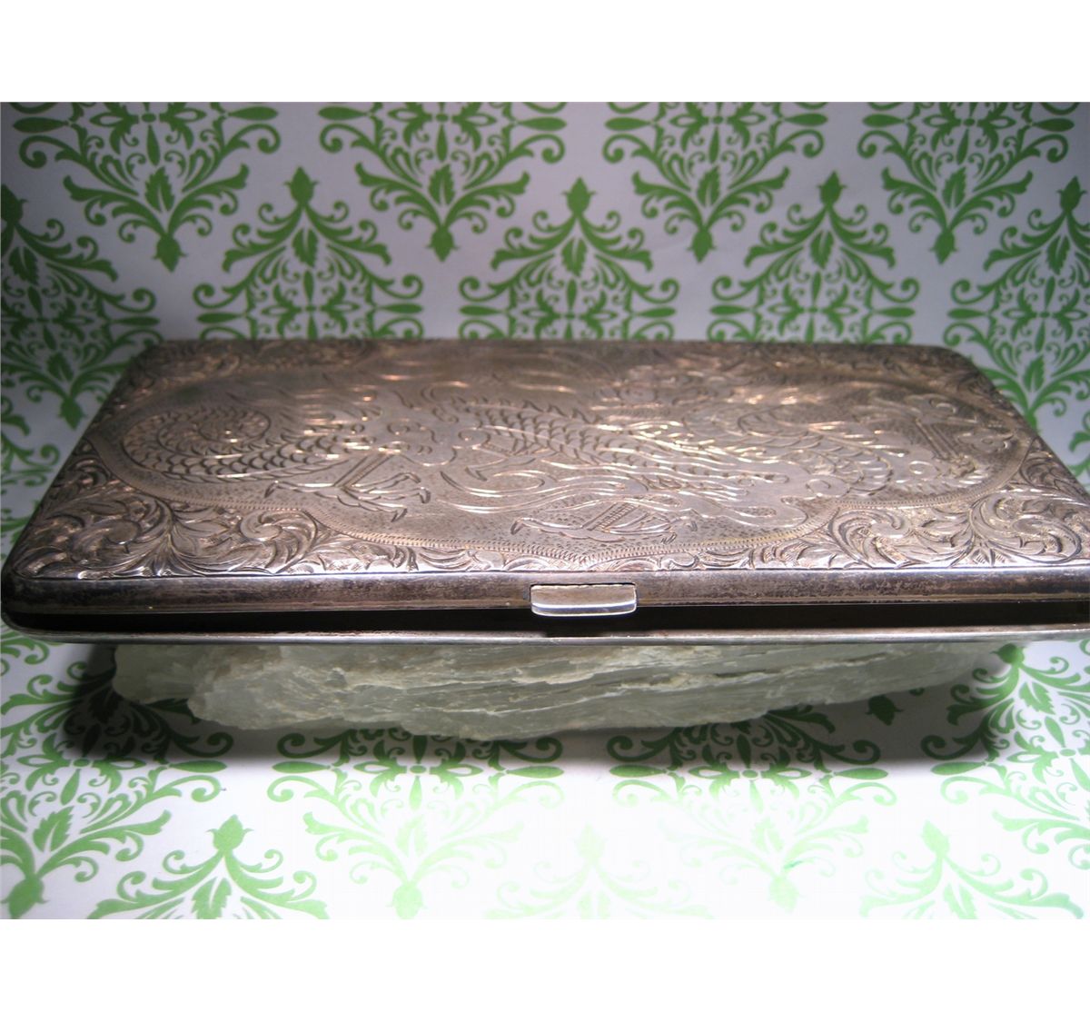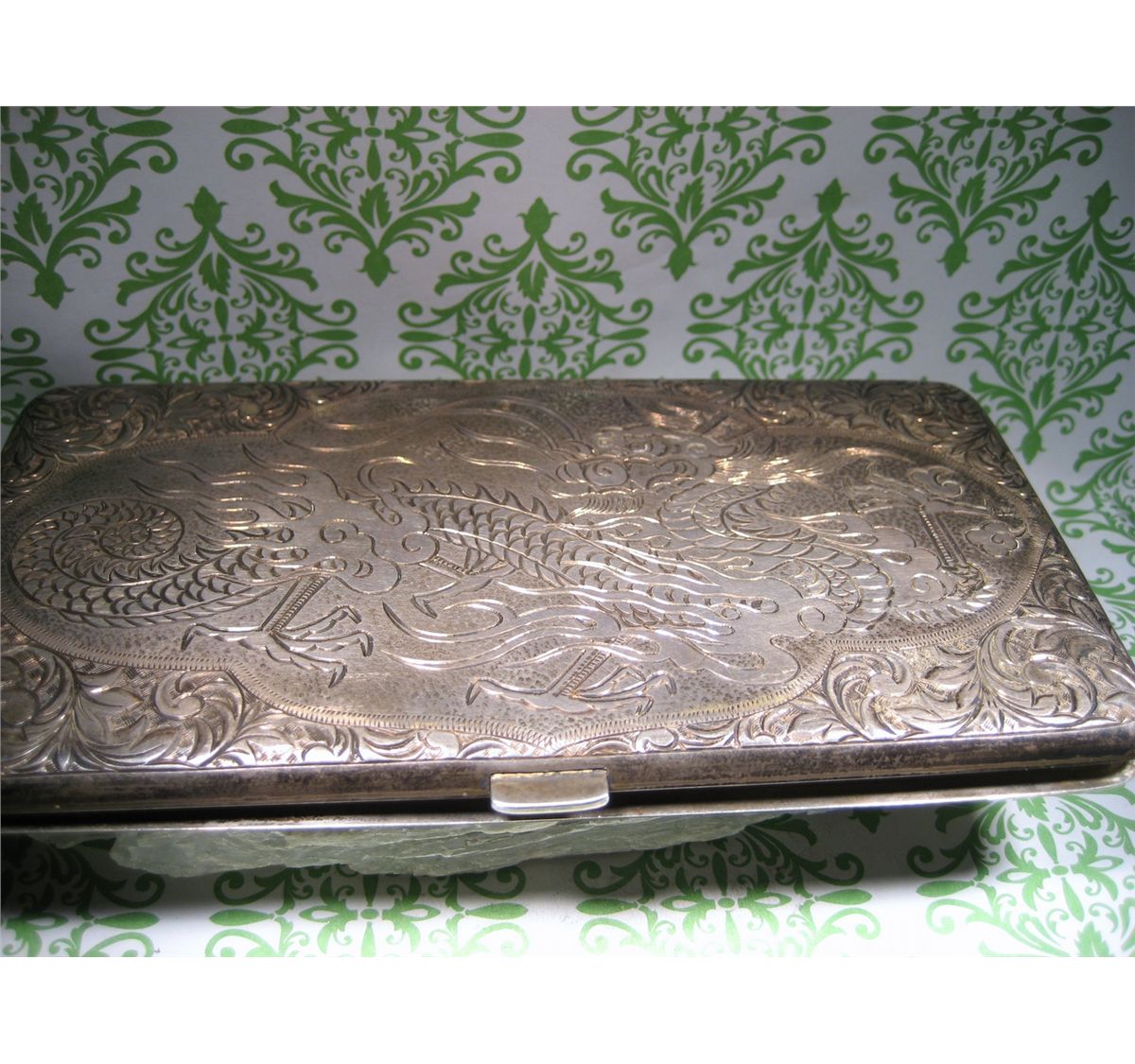 (1) T.W. 198.5 GRAMS ANTIQUE CHINESE EXPORT STERLING SILVER CIGARETTE CASE BOX DRAGON XFR TESTED REPORT FOR 92.61 % SILVER