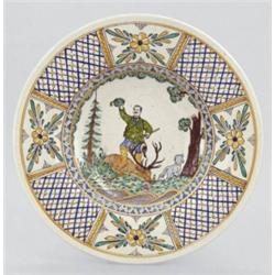 Stomfa, 19. sz. vége, ónmázas fajansz, alján "ST" jelzéssel, d: 34 cm