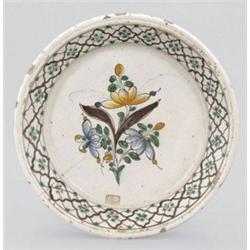 Felvidék, 18. sz. második fele, ónmázas fajansz, repedt, d: 28,5 cm, repedt