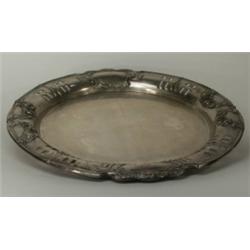 Ezüst, 543 g. Kerek forma, domborított, áttört virágmintás díszítéssel, Jelzett: osztrák, XIX. sz. vége, L&C mesterjeggyel