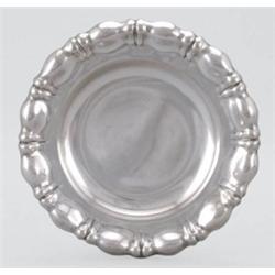 Pest, 19. sz. vége, ezüst, "Láng testvérek" jelzéssel, kerek forma hólyagos keskeny peremmel, 389,7 g; d: 26,5 cm