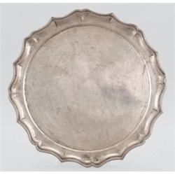 Pest, 1930 körül, ezüst, Bokor Sándor Károly, hengerelt és trébelt kerek forma, karéjos széllel, 640,6 g; d: 36 cm