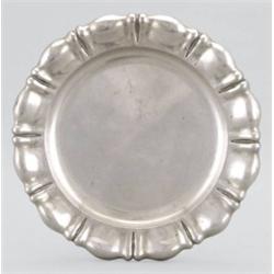 Pest, 1930 körül, ezüst, trébelt hólyagos díszítéssel, "FI" mesterjegy, 741,2 g; d: 35 cm