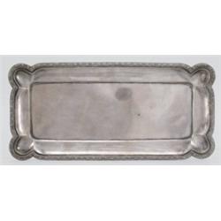 Pest, 1940 körül, ezüst, Láng Miklós, karéjos forma rózsamintás bordürrel, 722,5 g; 20*42 cm