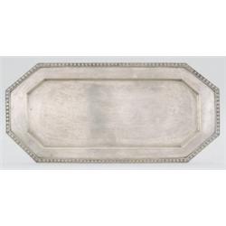 Bécs, 20. sz. eleje, ezüst, "JH" mesterjegy, nyújtott nyolcszögletu forma,gyöngysoros rombusz bordürös széllel, hátulján "Klári" vésettel, 604,3; 20*42 cm