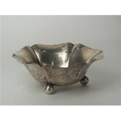Ezüst, 111 g, golyó lábakon álló préselt forma, Jelzett: magyar, 1940-es évek, SR mesterjeggyel