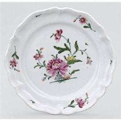Holics, 18. sz. vége, ónmázas fajansz, alján "HP" jelzéssel, repedt, d: 23,5 cm, repedt