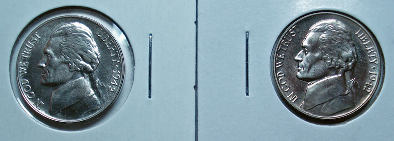 T1 and T2 1942 Jefferson proof nickels;T1 PR64 lite spots--T2 PR64