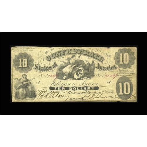 <B>T10 $10 1861.</B></I> "For" has been added before "Treasr." on this example that is still snappy. <B>Fine.</B></I>