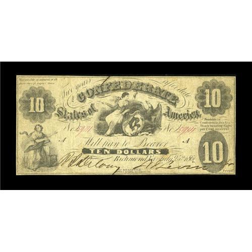 <B>T10 $10 1861.</B></I> This is a thin paper example that also has "for" added by the signer for the Treasurer. The back reveals a right edge repair. <B>Very Good.</B></I><BR><BR><b>Shipping:</b> Coins & Currency (<a target="_blank" href="http://www.heritageauctions.com/common/shipping.php">view shipping information</a>)