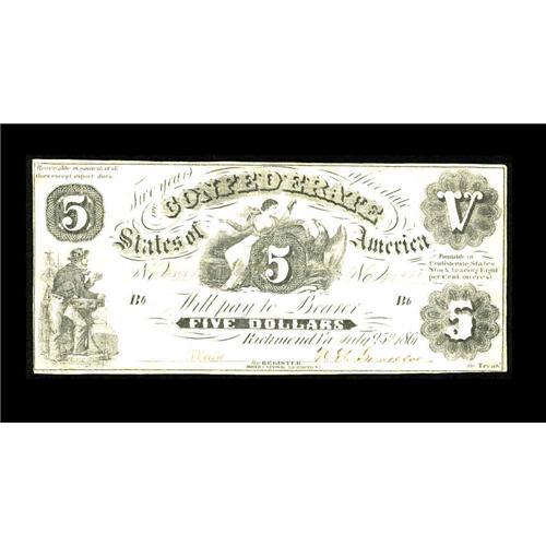 <B>T11 $5 1861.</B></I> T11s are scarce in any grade, and this is a nice looking <B>Fine</B></I> example that has been expertly repaired. <BR><BR><B>I