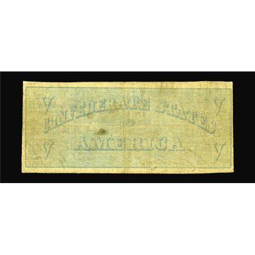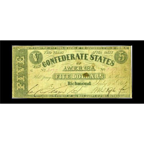 <B>T12 $5 1861.</B></I> We are fortunate to have another example of this Criswell number in our auction. This <B>Very Good</B></I> $5 is problem-free for the grade with the back showing the fading that is common for this scarce issue.