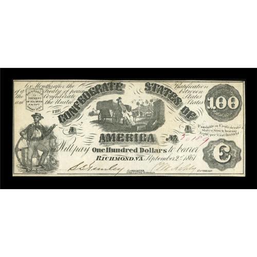 <B>T13 $100 1861 Cr. 58A PF-6 State I.</B></I><BR> This very rare variety has the remnants of a double line box around "One Hundred Dollars". Gorgeous white color, and fully framed. Definitely one for the Fricke Condition Census. <B>About Uncirculated</B></I>.<BR><BR><b>Shipping:</b> Coins & Currency (<a target="_blank" href="http://www.heritageauctions.com/common/shipping.php">view shipping information</a>)