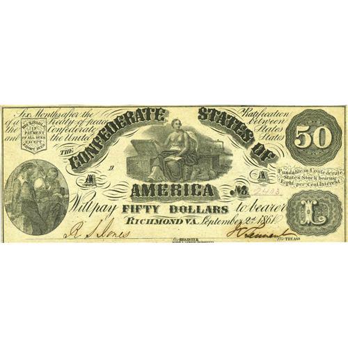 <B>T14 PF-3 $50 1861.</B></I> A striking note that has been nicely preserved. <B>Crisp Uncirculated.</B></I>