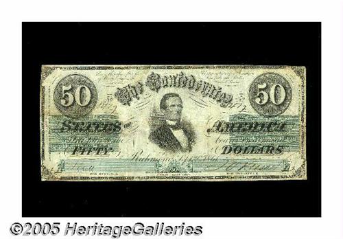 <B>T16 $50 1861.</B></I> The paper is crisp and free of pinholes, but the back shows soiling. <B>Fine.</B></I>