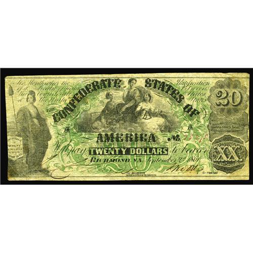 <B>T17 $20 1861.</B></I> Nice color and no worries of pinholes are just two traits of this delightful mid-grade $20. <B>Fine.</B></I>