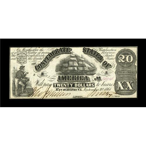 T18 $20 1861. This nicely preserved $20 is completely e