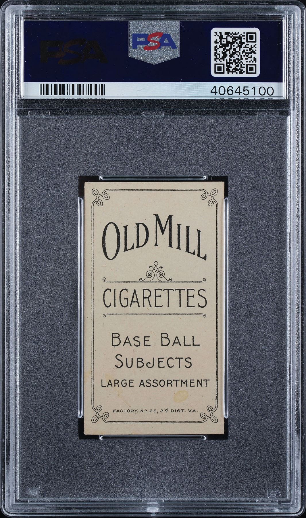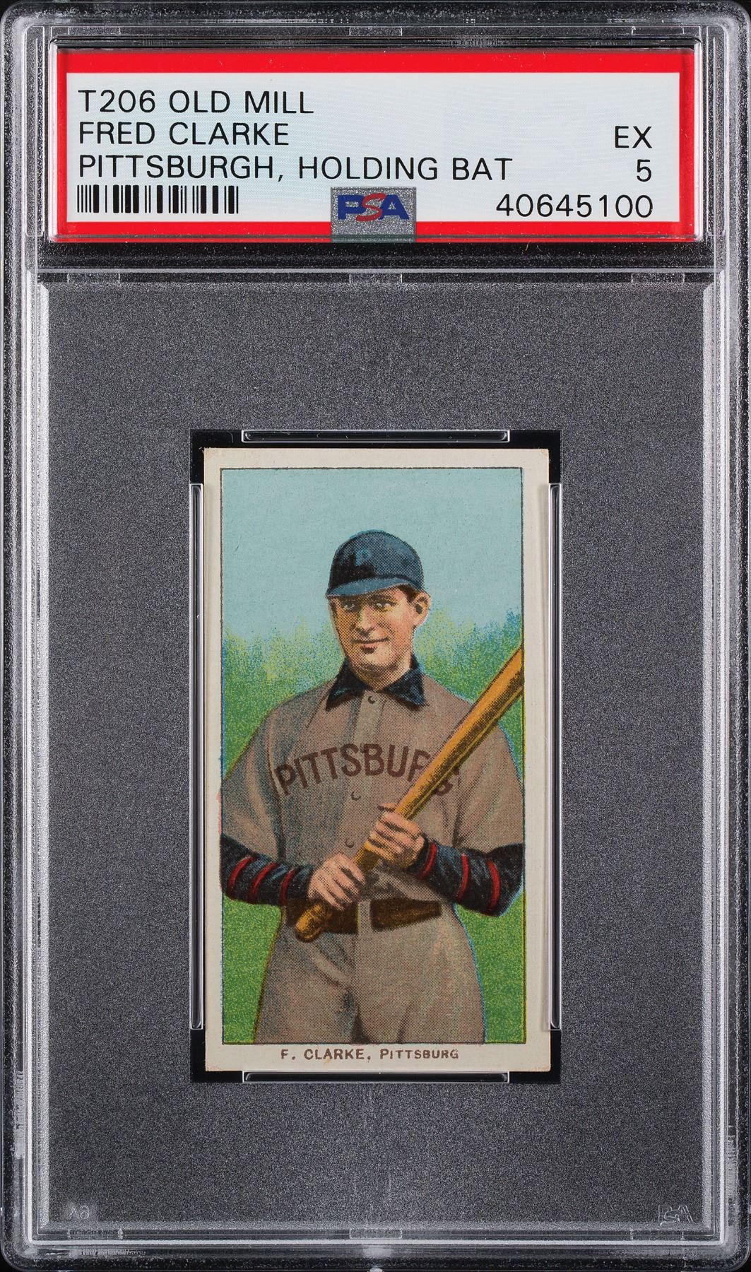 Graded by PSA EX 5. Appearing at first glance as a Near Mint card with sharp corners, closer inspection reveals a small chip in the enamel of the upper left corner, and a small toning/stain on the reverse. Tougher Old Mill brand back.
