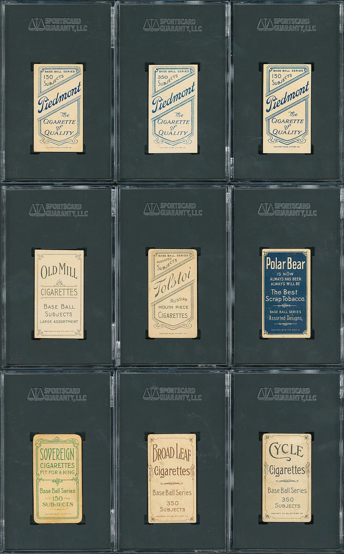 Total of 11 SGC graded cards, with 10 different backs and a doubling of the 1909 Piedmont.