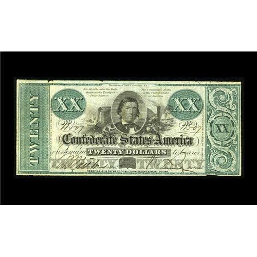 <B>T21 $20 1861.</B></I> The green ink is nice on this $20 that exhibits a few edge nicks and tears. <B>Fine,</B></I> CC. <BR><BR><B>Important n