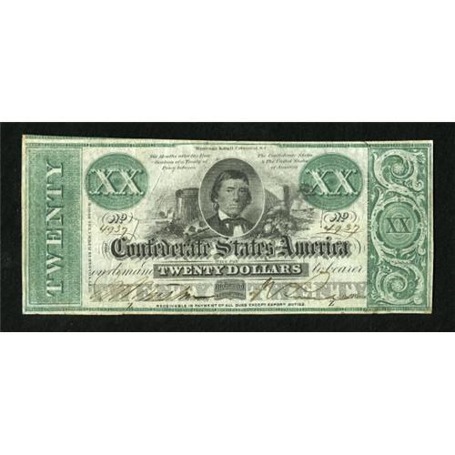 <B>T21 $20 1861.</B></I><BR> This $20 displays even circulation. <B>Very Fine, </B></I>CC.<BR><BR><b>Shipping:</b> Coins & Currency (<a target="_blank" href="http://www.heritageauctions.com/common/shipping.php">view shipping information</a>)