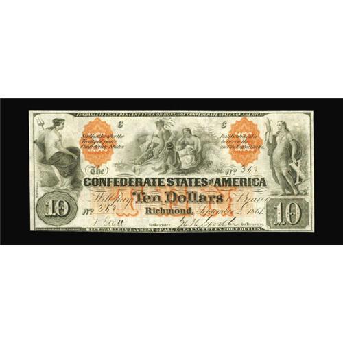 T22 $10 1861. Bright paper, a dark undertint, and healt