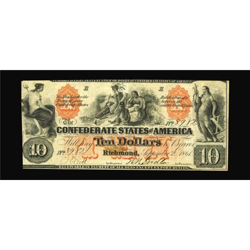 <B>T22 PF-1 $10 1861.</B></I> Plate letter B is found on this problem-free example with a choice orange undertint and natural paper surfaces. <B>Very Fine.</B></I>