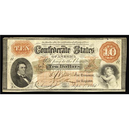 T24 $10 1861. The edge is a touch rough at upper left o T24 $10 1861.