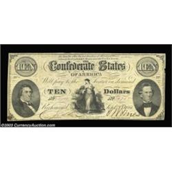 T25 $10 1861. Although only a few light folds are present, this Very Fine-Extremely Fine example has a small stain in the lower-left corner. Not quite the equal to the note above, but still, nonetheless, quite attractive and highly collectible. Important notice: Heritage usually auctions material at the rate of 200-250 lots per hour. On some occasions eBay Live bid software or the Internet may not be able to keep up with the pace of the auction. We recommend placing a realistic absentee bid now as insurance to avoid disappointment. Occasionally the auctioneer may eliminate or reject an eBay Live bid, and the auctioneer may also reopen a lot after the close of the eBay live bidding (usually because we missed an audience bid), and may reject your bid even if it shows you as the winning bidder. By bidding via eBay Live, you agree that Heritage may award the lot to another bidder at its sole discretion under the circumstances described above or any other reasonable circumstances. Also please note that all Heritage lots purchased through eBay Live carry a 20% Buyer's Premium. Please make sure you read the Terms and Conditions before you bid.