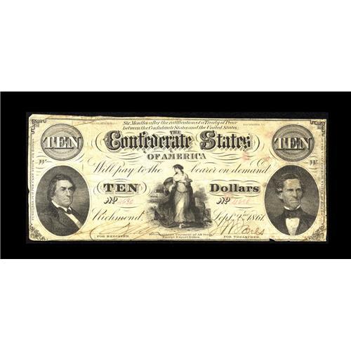 T25 $10 1861. This note is of the CSA block letter vari T25 $10 1861.