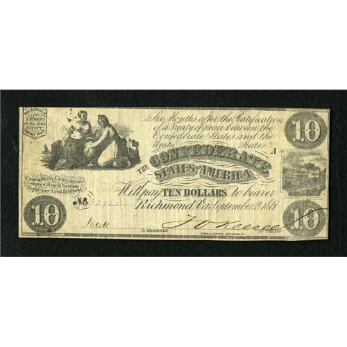 T28 $10 1861. The edges are undisturbed on this