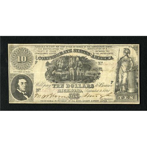 <B>T30 $10 1861.</B></I> This Second Series $10 is closer to the high end of the split <B>Fine-Very Fine</B></I> grade.<BR><BR><b>Shipping:</b> Coins & Currency (<a target="_blank" href="http://www.heritageauctions.com/common/shipping.php">view shipping information</a>)