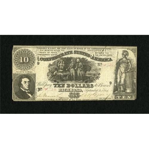 <B>T30 $10 1861.</B></I><BR> This is the popular <I>Sweet Potato Dinner </B></I>vignette note. Whether this encounter between General Marion, the Swamp Fox, and an unknown British officer took place during the Revolutionary War is open to debate, but it is known that General Marion ran circles around the British. Bright <B>Fine.</B></I><BR><BR><b>Shipping:</b> Coins & Currency (<a target="_blank" href="http://www.heritageauctions.com/common/shipping.php">view shipping information</a>)