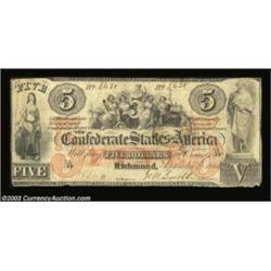 T31 $5 1861. A nice appearing example with good color for the grade, but there are two small rust holes and a repaired area at the center where a large COC has been replaced. Fine. Important notice: Heritage usually auctions material at the rate of 200-250 lots per hour. On some occasions eBay Live bid software or the Internet may not be able to keep up with the pace of the auction. We recommend placing a realistic absentee bid now as insurance to avoid disappointment. Occasionally the auctioneer may eliminate or reject an eBay Live bid, and the auctioneer may also reopen a lot after the close of the eBay live bidding (usually because we missed an audience bid), and may reject your bid even if it shows you as the winning bidder. By bidding via eBay Live, you agree that Heritage may award the lot to another bidder at its sole discretion under the circumstances described above or any other reasonable circumstances. Also please note that all Heritage lots purchased through eBay Live carry a 20% Buyer's Premium. Please make sure you read the Terms and Conditions before you bid.