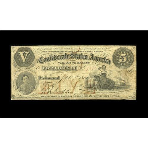 T32 $5 1861. Mid-grade and up examples of this design c T32 $5 1861.