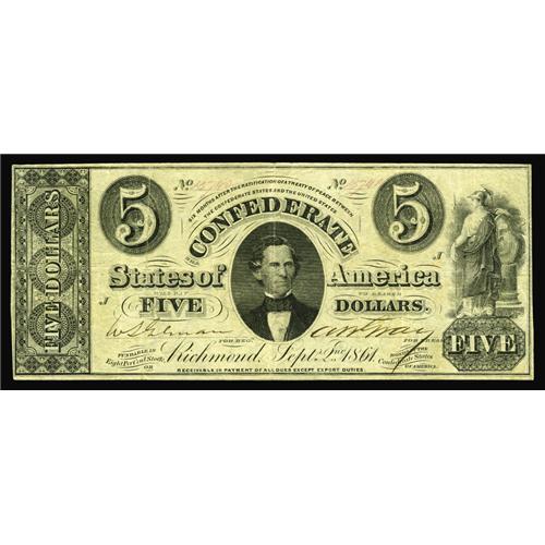 <B>T34 $5 1861.</B></I> Studious behavior uncovers a couple of trivial edge abrasions on this <B>Very Fine</B></I> $5. <BR><BR><B>Important notice:</