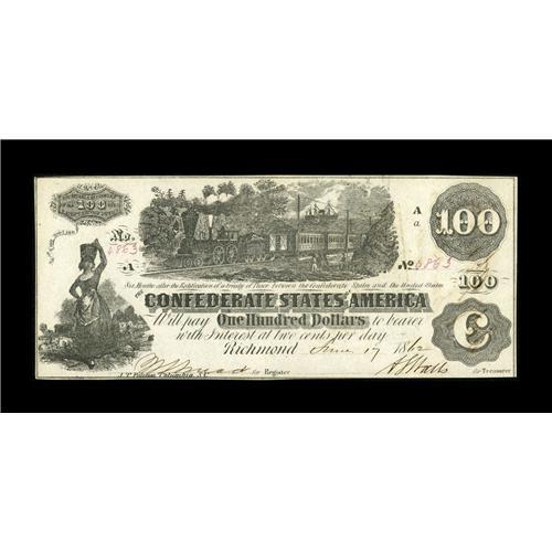 <B>T39 $100 1862.</B></I> This missing frameline at lower right keeps this <B>Crisp Uncirculated</B></I> "Straight Steam" example from a higher grade.<BR><BR><b>Shipping:</b> Coin/Currency (<a target="_blank" href="http://www.heritageauctions.com/common/shipping.php">view shipping information</a>) <BR><BR><B>Import