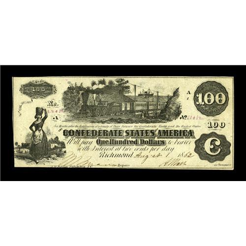 <B>T39 $100 1862.</B></I> This is a scarcer PF-7 Fricke variety with a serial number error. The left-hand serial number reads "22082," while the right-hand serial number reads "82082." A Henry Savage Interest stamp is noted on the back. <B>About Uncirculated.</B></I><BR><BR><b>Shipping:</b> Coin/Currency (<a target="_blank" href="http://www.heritageauctions.com/common/shipping.php">view shipping information</a>)
