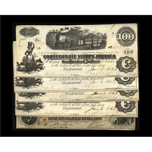 T40 $100 1862 Five Consecutive Examples.T41 $100 1862. T40 $100 1862 Five Consecutive Examples