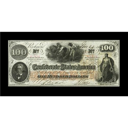 <B>T41 $100 1862.</B></I> Here is a note that will be submitted to a third-party grading service (gasp!). Full margins encompass the framelines on this simply gorgeous <B>Gem Crisp Uncirculated</B></I> example with just a hint of a block letter watermark detected at bottom. This note has three Augusta Interest stamps on back.<BR><BR><b>Shipping:</b> Coin/Currency (<a target="_blank" href="http://www.heritageauctions.com/common/shipping.php">view shipping information</a>)