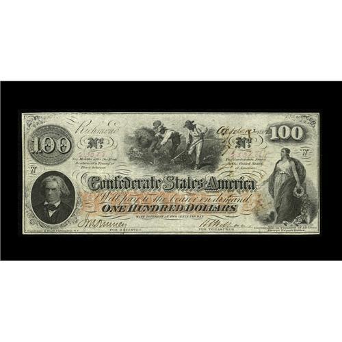 <B>T41 $100 1862.</B></I> This fully framed, bright note carries the scarce issuing location of New Iberia, (LA). <B>Very Fine.</B></I>