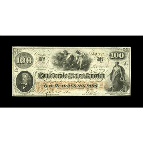 <B>T41 $100 1862.</B></I> This is a fully framed, embossed Scroll 1 $100 that passed through the auspices of Confederate agent Henry Savage. <B>Choice Crisp Uncirculated.</B></I><BR><BR><b>Shipping:</b> Coin/Currency (<a target="_blank" href="http://www.heritageauctions.com/common/shipping.php">view shipping information</a>)