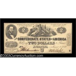 <TABLE cellSpacing=0 cellPadding=0 width="100%" bgColor=#000000 border=0><TBODY> <TR><TD width="100%"><TABLE cellSpacing=1 cellPadding=3 width="100%" border=0><TBODY><TR><TD width="100%" bgColor=#79735c><FONT face=arial color=#ffffff size=3><B>Description</B> </FONT></TD></TR><TR><TD width="100%" bgColor=#ffffff><FONT face=arial size=2><B>T42 $2 1862.</B></I> A perfectly centered example of the first $2 authorized by the Confederate government. <B>Choice Crisp Uncirculated.</B></I> (300-400 ) </FONT></TD></TR></TBODY></TABLE></TD></TR></TBODY></TABLE><BR><TABLE cellSpacing=0 cellPadding=0 width="100%" bgColor=#000000 border=0><TBODY><TR> Important notice: Heritage usually auctions material at the rate of 200-250 lots per hour. On some occasions eBay Live bid software or the Internet may not be able to keep up with the pace of the auction. We recommend placing a realistic absentee bid now as insurance to avoid disappointment. Occasionally the auctioneer may eliminate or reject an eBay Live bid, and the auctioneer may also reopen a lot after the close of the eBay live bidding (usually because we missed an audience bid), and may reject your bid even if it shows you as the winning bidder. By bidding via eBay Live, you agree that Heritage may award the lot to another bidder at its sole discretion under the circumstances described above or any other reasonable circumstances. Also please note that all Heritage lots purchased through eBay Live carry a 20% Buyer's Premium. Please make sure you read the Terms and Conditions before you bid.</TR></TBODY></TABLE>