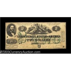 <TABLE cellSpacing=0 cellPadding=0 width="100%" bgColor=#000000 border=0><TBODY> <TR><TD width="100%"><TABLE cellSpacing=1 cellPadding=3 width="100%" border=0><TBODY><TR><TD width="100%" bgColor=#79735c><FONT face=arial color=#ffffff size=3><B>Description</B> </FONT></TD></TR><TR><TD width="100%" bgColor=#ffffff><FONT face=arial size=2><B>T43 $2 1862.</B></I> Although not the equal of the Extremely Fine T43 that brought just over $12,000 in our CAA FUN sale last January, this green overprinted type is seldom seen except heavily worn. This <B>Fine+++</B></I> example from the Kennedy collection is problem-free for the grade and is nice enough for almost any CSA type collection. (250-450 ) </FONT></TD></TR></TBODY></TABLE></TD></TR></TBODY></TABLE><BR><TABLE cellSpacing=0 cellPadding=0 width="100%" bgColor=#000000 border=0><TBODY><TR> Important notice: Heritage usually auctions material at the rate of 200-250 lots per hour. On some occasions eBay Live bid software or the Internet may not be able to keep up with the pace of the auction. We recommend placing a realistic absentee bid now as insurance to avoid disappointment. Occasionally the auctioneer may eliminate or reject an eBay Live bid, and the auctioneer may also reopen a lot after the close of the eBay live bidding (usually because we missed an audience bid), and may reject your bid even if it shows you as the winning bidder. By bidding via eBay Live, you agree that Heritage may award the lot to another bidder at its sole discretion under the circumstances described above or any other reasonable circumstances. Also please note that all Heritage lots purchased through eBay Live carry a 20% Buyer's Premium. Please make sure you read the Terms and Conditions before you bid.</TR></TBODY></TABLE>